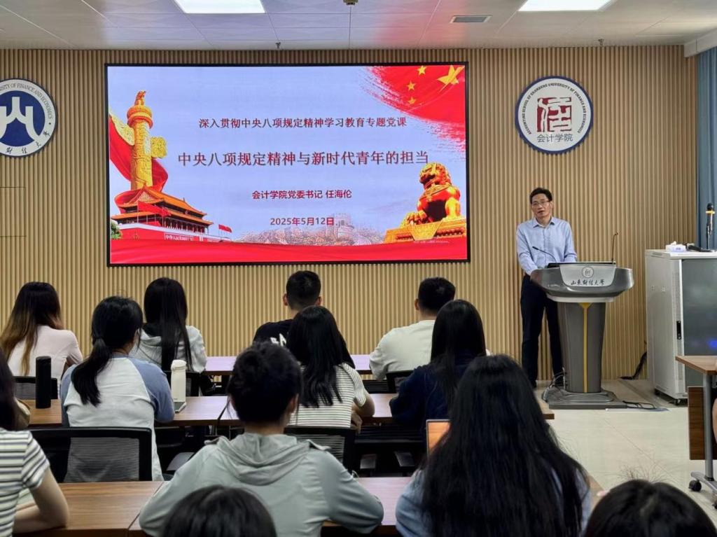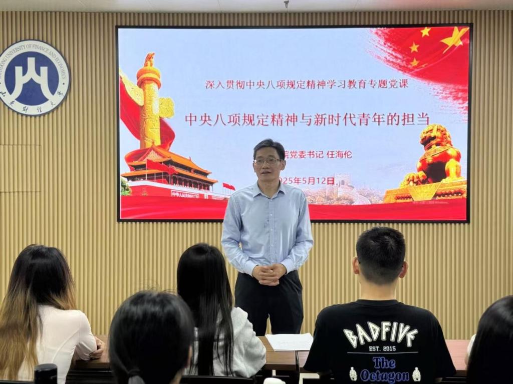 任海伦以《中央八项规定精神与新时代青年的担当》为题,旨在引导青年学子深刻领会中央八项规定精神内涵,并就如何贯彻落实中央八项规定,担起新时代青年的责任,提出三点要求。一是以身作则,提高政治站位,要从思想根源上深化对中央八项规定精神的理解,将其转化为日常行动准则,以“小切口”推动个人作风与思想的“大转变”。二是躬身实践,以实际行动落实优良作风,在学习和生活中践行求真务实、廉洁自律的作风,传承勤俭节约的优良传统。三是守正创新,勇担时代使命,鼓励同学们既要坚守党的优良传统,又要结合时代需求探索创新路径,以青春力量推动社会发展。