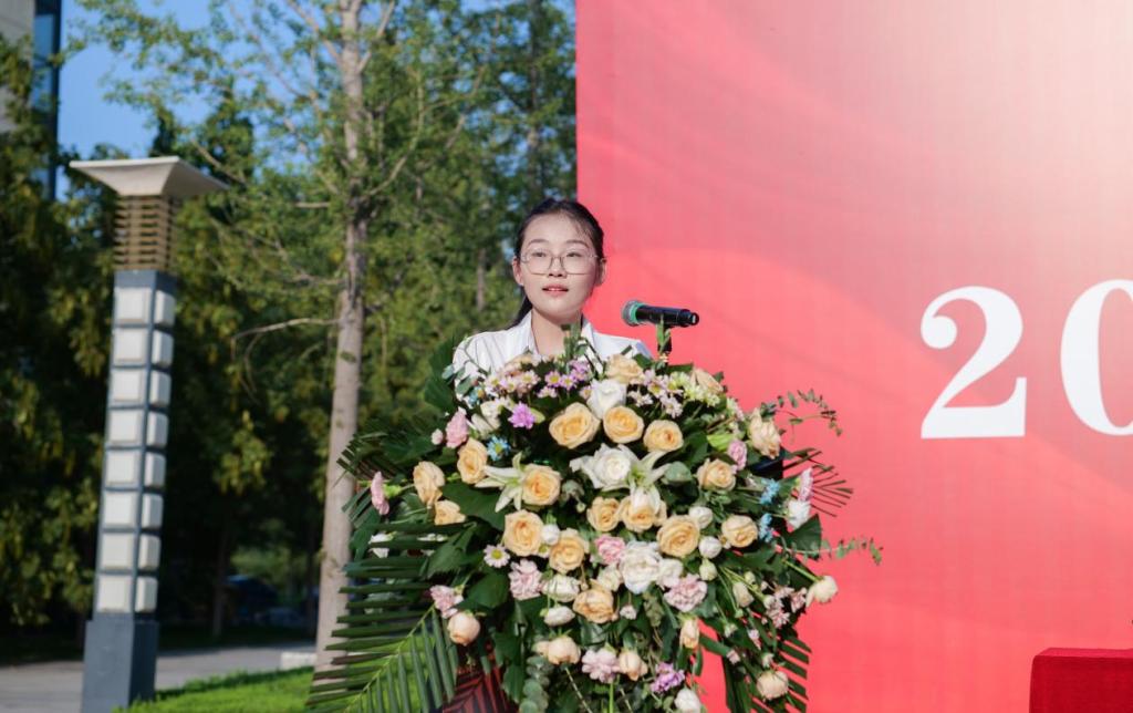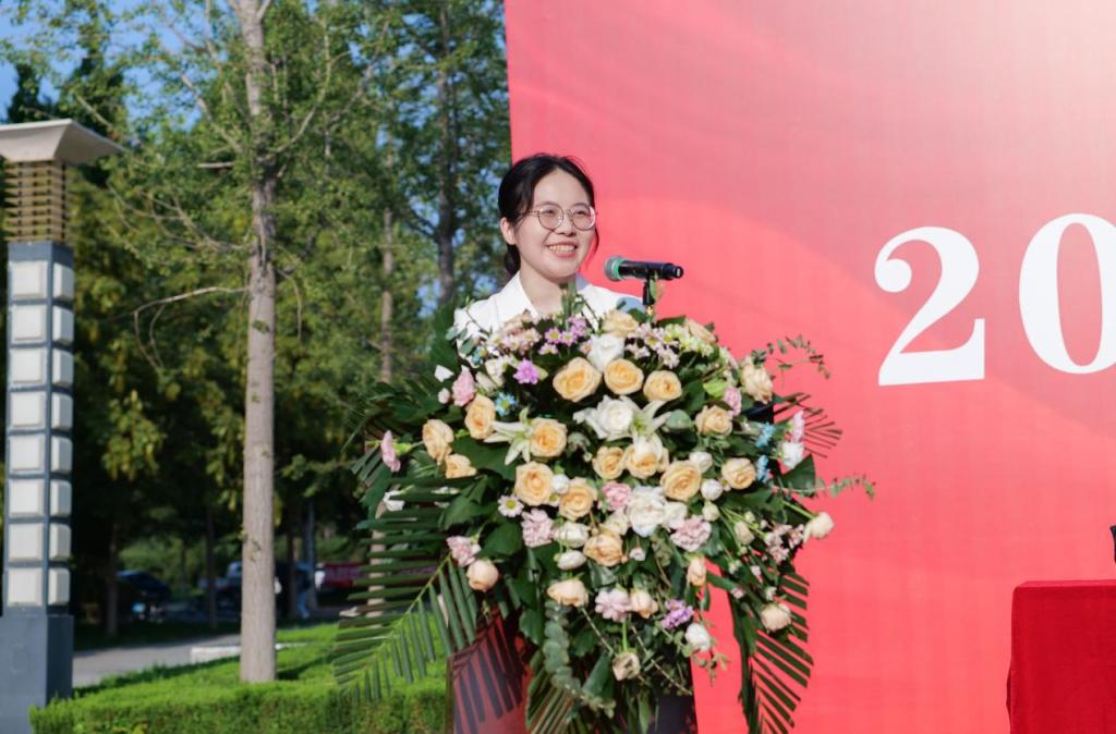 薛雅祺作为在校生代表发言,分享了自己六年来在成人网 从本科到研究生的学习经历。她提出“做时间主人、在试错中成长、将诚信融入生命”三点感悟,鼓励新生为国家经济发展贡献力量。