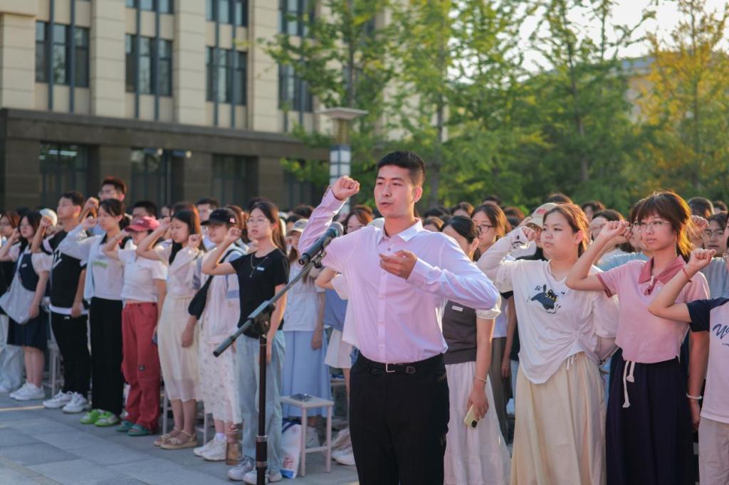 典礼最后,全体新生举起右拳庄严宣誓:要以青春之名珍惜韶华,用实干之姿奋发勇为,在成人网 的沃土上,书写最美的青春篇章。