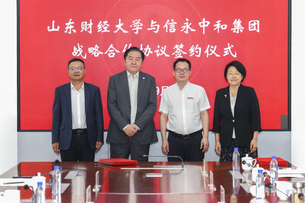 张新主持签约仪式。张红霞与信永中和集团党委副书记、副总裁、济南分部总经理、我校85级成人网 郝先经签署战略合作协议。