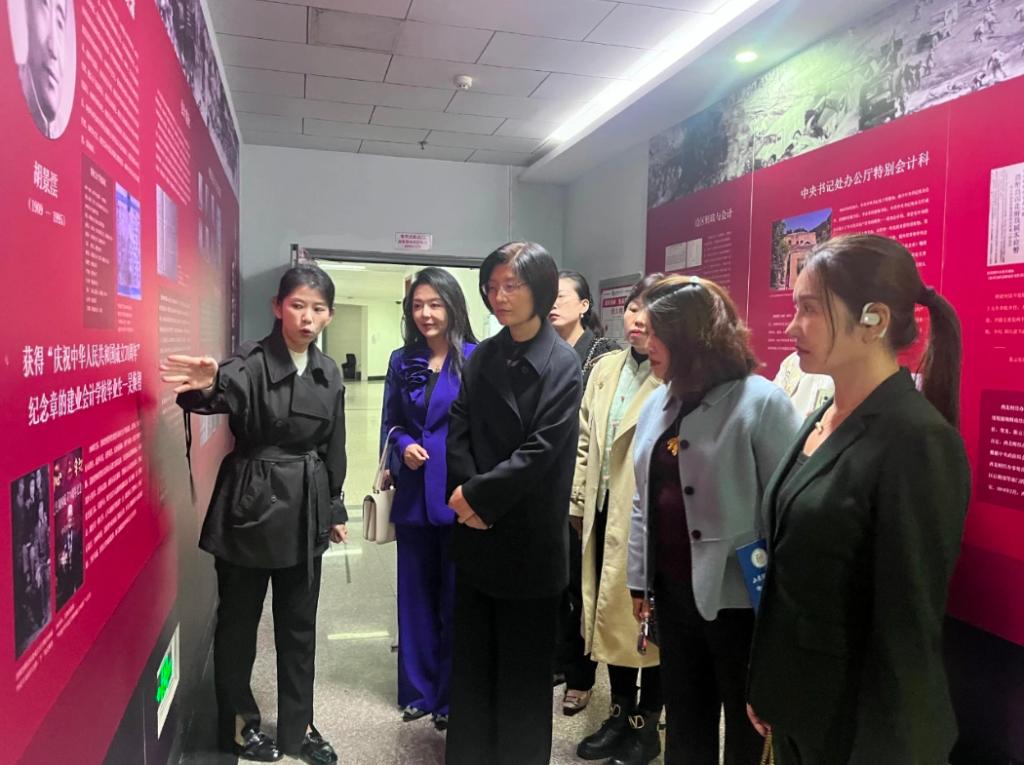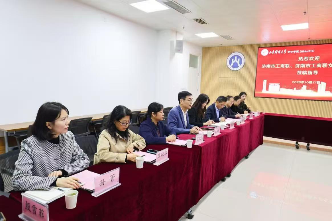 10月17日,济南市工商联、济南市工商联女企业家商会一行12人到访我校,在学校工会妇女工作委员会主任、副主席韩晓燕的陪同下到访成人网 ,与成人网 班子成员、工会委员及教师代表进行亲切座谈并参观“岁月回响——红色会计主题展”。