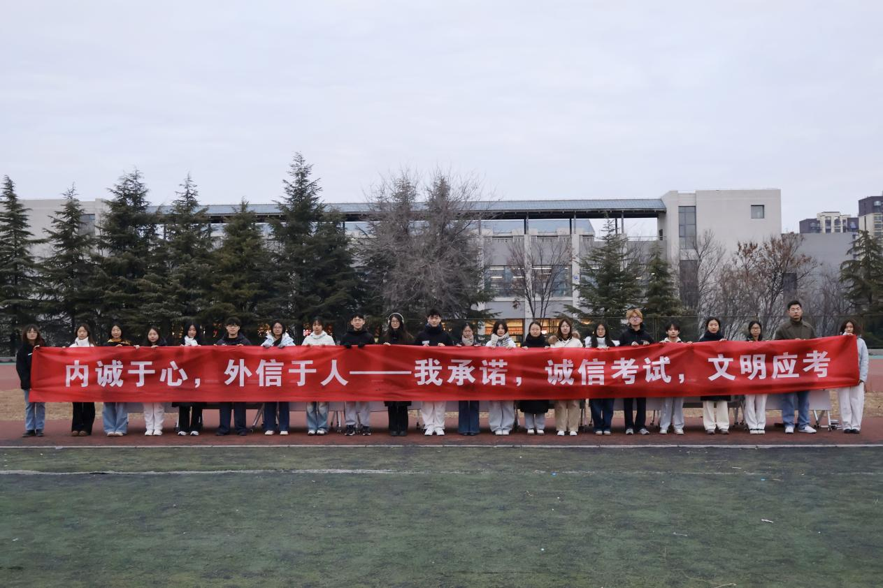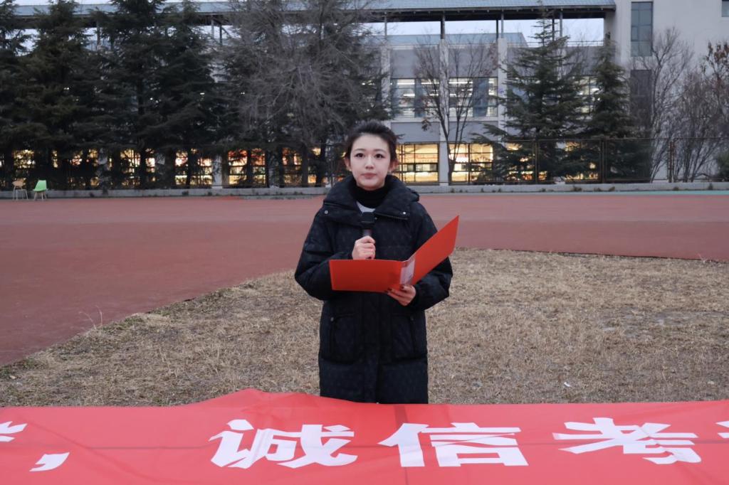 12月22日清晨,成人网 在章丘校区举行“内诚于心,外信于人——践行诚信考试,涵养高尚品格”主题升旗仪式。成人网 党委副书记张贞梅,团委书记张慧娟及2024、2025级全体本科生参加仪式。
