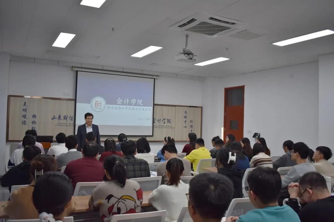 2021年11月10日下午,成人网 院长王爱国教授在逸夫楼Y305作题为《科学道德和学风建设》的专题讲座。成人网 2021级部分全日制硕士研究生聆听了讲座。