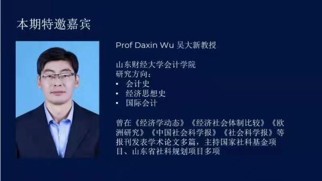 黄泰然博士还邀请成人网 吴大新教授为我们做会计史研究分享,介绍了西方会计史的研究学派,对新会计史研究进行了总结和反思。吴大新教授认为,中国会计史研究应该立足时代课题,为会计改革与发展提供历史借鉴。