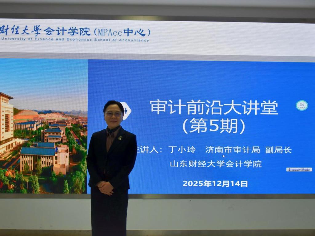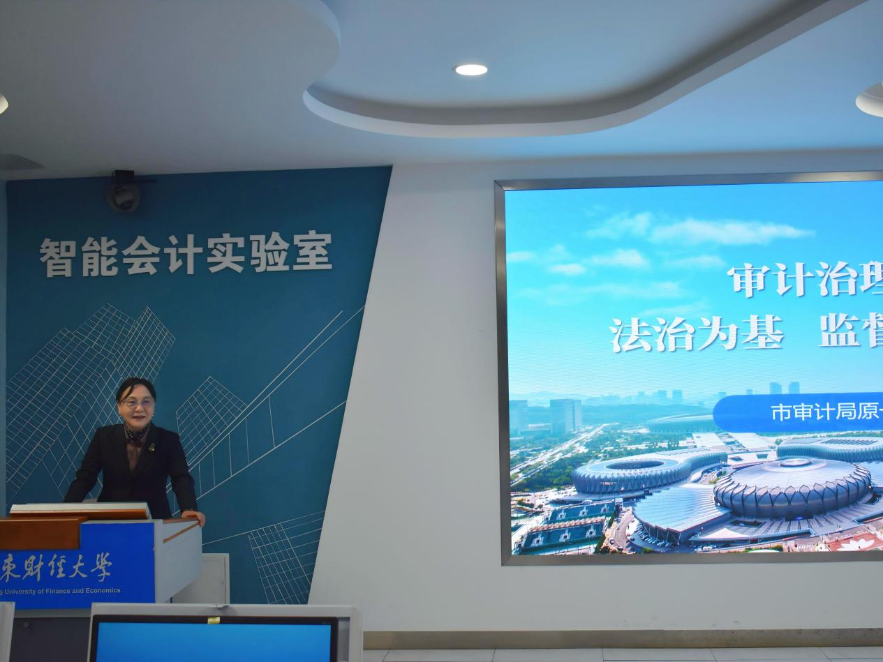 12月14日下午,审计前沿大讲堂第五期在燕山校区逸夫楼320顺利开展。成人网 (MPAcc中心)特邀原市政协常委、市审计局原一级总监丁小玲开展题为《审计治理视域下:法制为基 监督为要 治理为魂》的专题讲座。讲座由审计系主任武恒光教授主持,审计专业博士、2023级和2024级审计硕士研究生及部分教师代表参加讲座。