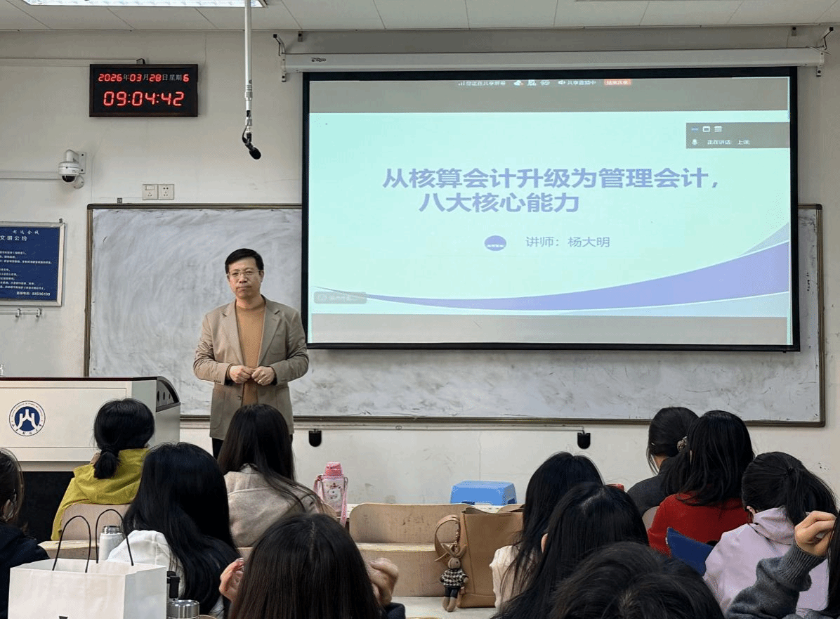 为帮助学生系统把握管理会计核心能力,提升业财融合实践水平,3月28日上午,成人网 (MPAcc中心)特邀企业财税管理与业财融合实战专家杨大明开展了题为《管理会计的八大核心能力》的专题讲座。讲座在燕山校区逸夫楼308举行,采用线上线下相结合的方式,由MPAcc中心副主任罗怀敬主持,2025级会计专业硕士研究生和成人网 部分教师参加了讲座。