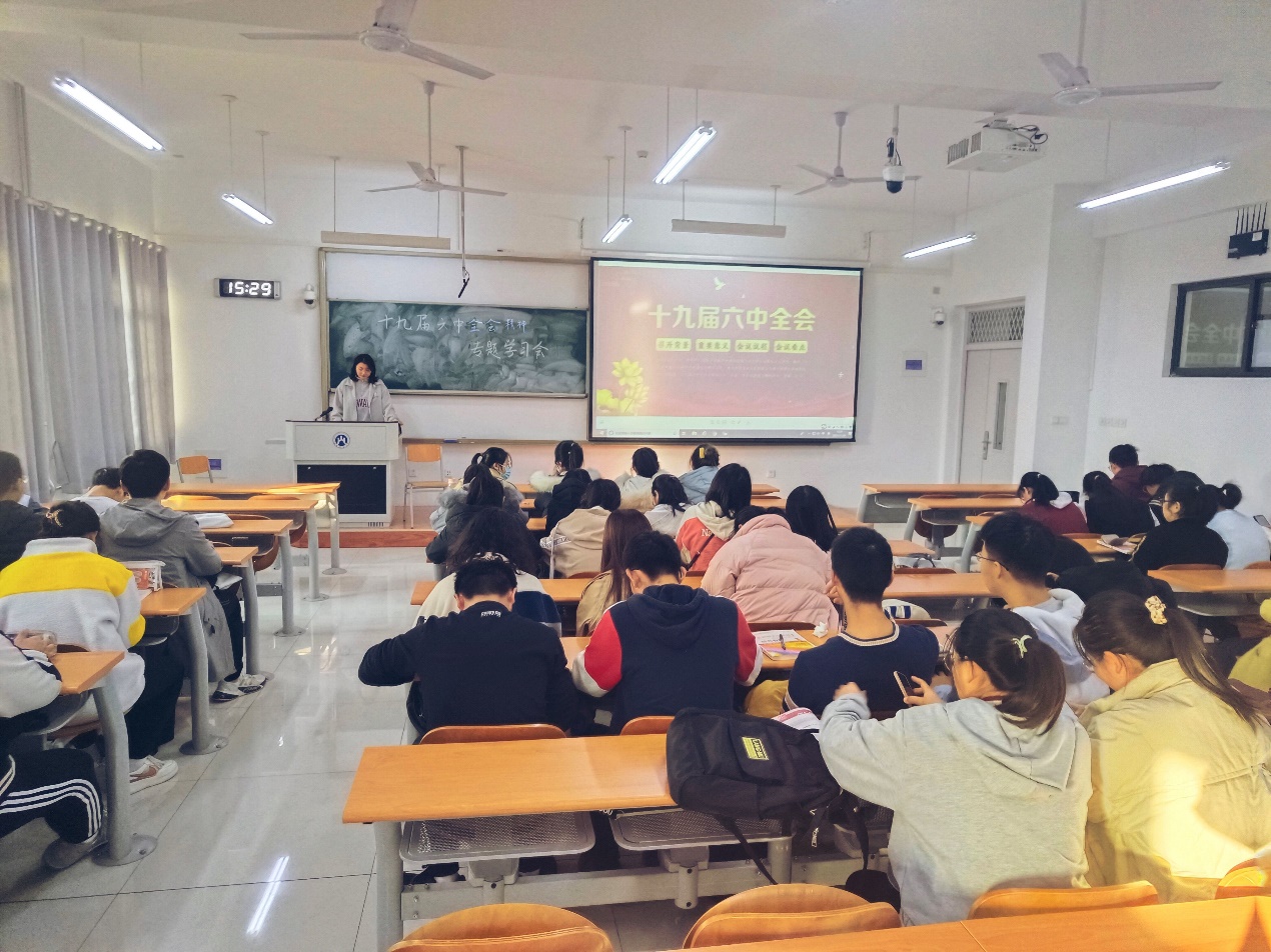 中国共产党第十九届中央委员会第六次全体会议于2021年11月8日至11日在北京举行。为深入学习贯彻党的十九届六中全会精神,11月30日晚,成人网 团委在圣井校区6214教室组织19级、20级和21级各班团支部书记及团干部代表,通过观看“11月12日中共中央新闻发布会”及解读《人民日报》关于全会精神的评论员文章等方式,集中学习和领会十九届六中全会的核心要义和实践要求。活动由杨孙安琪主持。