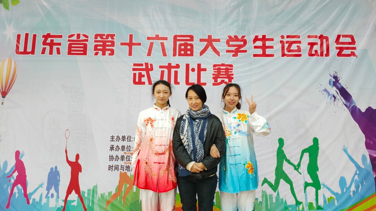 张梦雅、郑舒琪两位同学在山东省第十六届大学生运动会武术比赛中成绩斐然,共荣获一枚金牌、一枚银牌、一个第七名和一个第八名的卓越成绩。其中郑舒琪同学荣获甲组太极剑金牌、甲组太极拳银牌;张梦雅同学荣获甲组女子太极剑第七名、甲组女子太极拳第八名和体育道德风尚奖;两位同学共同获得女子团体第五名的优秀成绩并为学校赢得体育道德风尚运动队的荣誉称号。