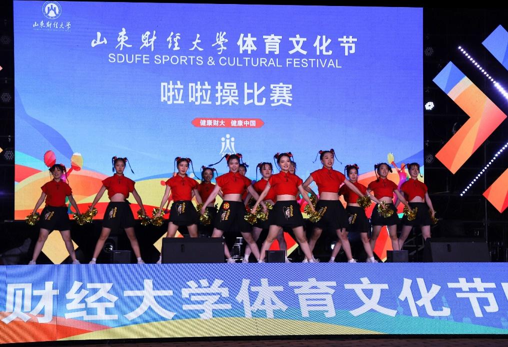 《春节序曲》鼓点响起,啦啦操代表队伍身着绣着代表我们中国传统手工艺品的“中国结”与国粹“京剧脸谱”的“中国红”队服闪亮登场。队员们笑容灿烂,舞姿翩翩,活力四射,整齐划一的动作和默契的配合使得台下欢呼阵阵,每位观众都被融入到这场欢腾喜庆的盛宴当中,整个校园充满了欢乐与活力。