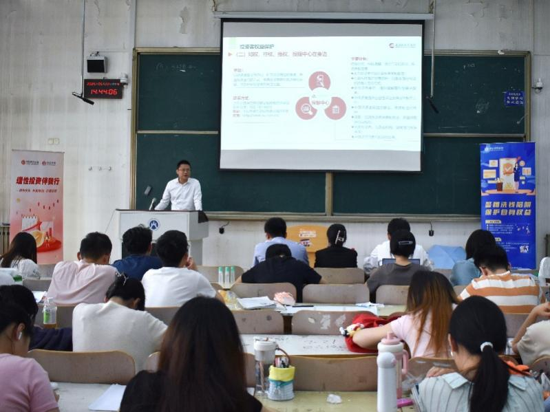 讲座伊始,张益陶给大家系统讲解了目前市场上主要存在的几种非法证券期货基金活动,例如非法荐股、股市黑嘴和非法集资等。他详细介绍了这些活动的基本特征和防范要点,以及在遭遇诈骗或者纠纷时如何向证监会和投资者服务中心寻求帮助,以维护自身的合法权益。