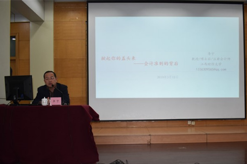 2019年3月13日下午,江西财经大学李宁教授应成人网 邀请,在燕山校区第三报告厅作题为《掀起你的盖头来—会计准则的背后》的学术报告。讲座由韩跃副教授主持,2018级部分硕士研究生到场聆听。