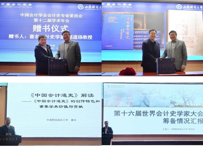 开幕式上举行了著名会计史学家、中南财经政法大学郭道扬教授赠书仪式。受郭道扬教授委托,会计史专业委员会主任委员、首都经济贸易大学付磊教授分别向中国会计学会和成人网 赠送《中国会计通史》。中南财经政法大学康均教授从全书架构、创作特色与学术价值三个方面对《中国会计通史》进行了详细解读;中南财经政法大学成人网 副院长李四海教授代表第十六届世界会计史学家大会筹委会通报了会议筹备情况。