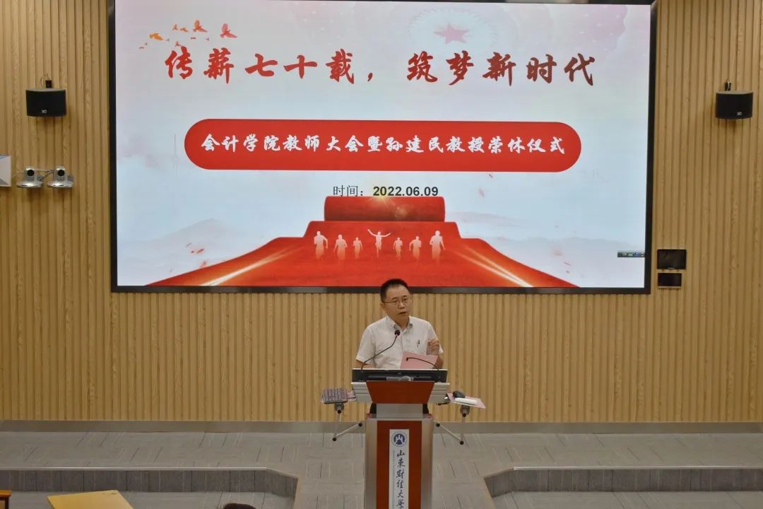 春风化雨数十载,一生描绘教育梦。党委书记邵文涛表示孙建民教授把青春留在岁月深处,把责任捧在手心,为成人网 教育事业不懈努力,光荣退休。副院长刘惠萍为孙教授送上鲜花,表达对教师崇高的敬意。随后,退休教师精彩发言,回顾在山财大工作的时光,表达了对成人网 举办荣休仪式的感谢,以及对学校、同事们的感激与不舍。
