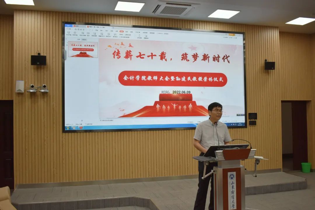 邵文涛向各位老师表达感谢,成人网 学生体量大,学生工作压力大,疫情之下,各位辅导员奋斗在防疫一线,保障学生的日常生活;全体老师认真备课、上课,保障教学活动的照常进行。随后,邵文涛对成人网 为庆祝成人网 建校七十周年暨合并建校十周年所作的准备进行简要介绍:第一,院史录《儒风和畅》记载了前辈对成人网 的付出,奠定了会院发展的基石,激励师生将院史和奋斗精神传承下去;第二,话剧《前路》以成人网 为人物原型,讲述了成人网 70年来自强不息、砥砺前行的故事,展现了学校人才培养薪火相传的精神;第三,院史图片展、红色会计展通过老物件、老照片,追忆成人网 党的建设、学科建设、人才培养的艰苦历程;第四,学生成果汇编、“书香会院”读书成果沙龙展现会院学工成果,是“立德树人”的具体体现。每一位成人网 、老师、学生的付出,都是为了表达对学校、成人网 深厚的情感。