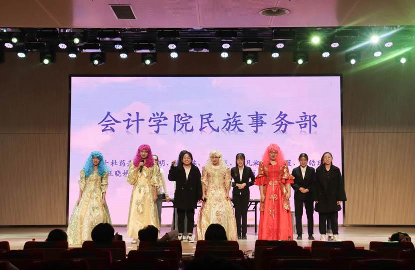 《外联部之官忠公主千里嫁西洋》、宿舍文化部《女王选妃记》中让人赞不绝口的才艺展示,引发在场同学的欢笑和共鸣;小品《名媛欢聚凡尔赛宫》在幽默的语言中尽显民族事务部的特色,以惊艳全场的民族舞为演出画上圆满的句号。
