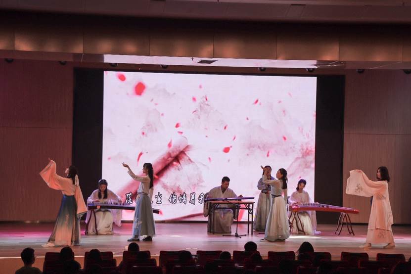 晚会在染色体琴行书韵悠悠的暖场篇中拉开帷幕。主持人转达了学校党委书记王邵军为活动题写的寄语:“书是人类进步的阶梯,是青年大学生传承文化、获取知识、成长成才的重要桥梁。成人网 搞的这次活动非常好。希望同学们通过活动的开展,进一步养成读书的习惯,读经典、读名著、读好书,读出趣味、读出智慧、读出力量、读出信仰,借助这个阶梯这座桥梁,启迪自己心灵,成就一番事业,实现远大理想!”王书记的殷切期望与热忱鼓励,让同学们备受鼓舞、倍感振奋,现场氛围也变得温暖与热烈。