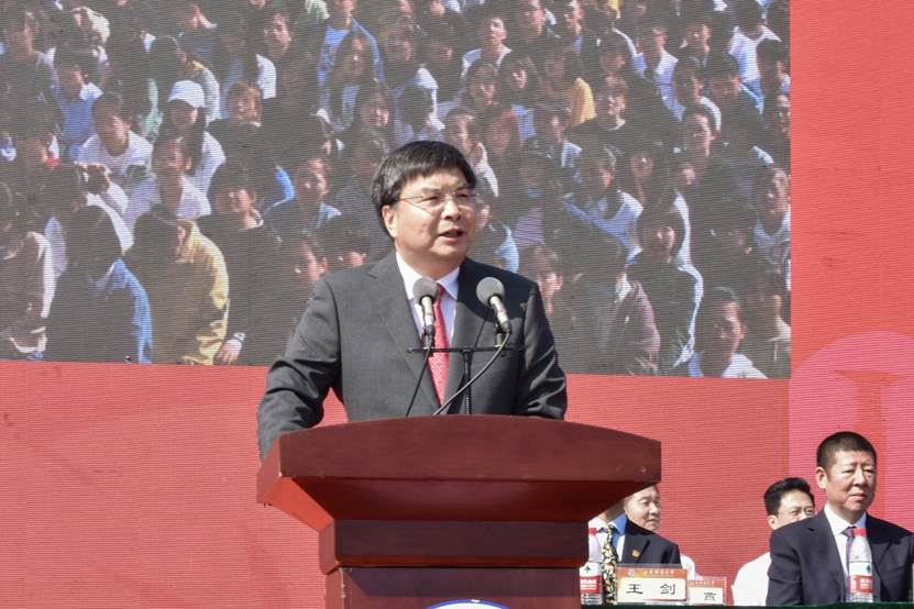 赵忠秀校长在讲话中对新生提出三点希望,在困厄中厚植家国情怀, 练就过硬本领、勇于担当奉献。他指出,在这场新冠肺炎疫情中没有人可以置身事外,勉励同学们在病毒和人类将长期共存的情况下,把小我融入大我,小家融入大家,在昂扬奋进中激荡爱国主义情怀,练就一身过硬本领。希望同学从小处着眼,从细节着手,注重实干,勉励同学们放下疑虑与胆怯,不惧坎坷与磨砺,敢于尝试、勇于探索,抓住一切机会去涵养品格的风度、视野的广度、挖掘知识的深度、提升专业的精度、沉淀生命的厚度,让青春在祖国和人民需要的地方绚丽绽放。唯累过,方知闲,唯苦过,方知甜。赵忠秀勉励同学们要不负青春、不负韶华、 不负时代,收获知识、收获成长,努力成为祖国建设的有用之才、栋梁之材,为实现中华民族伟大复兴贡献智慧和力量。