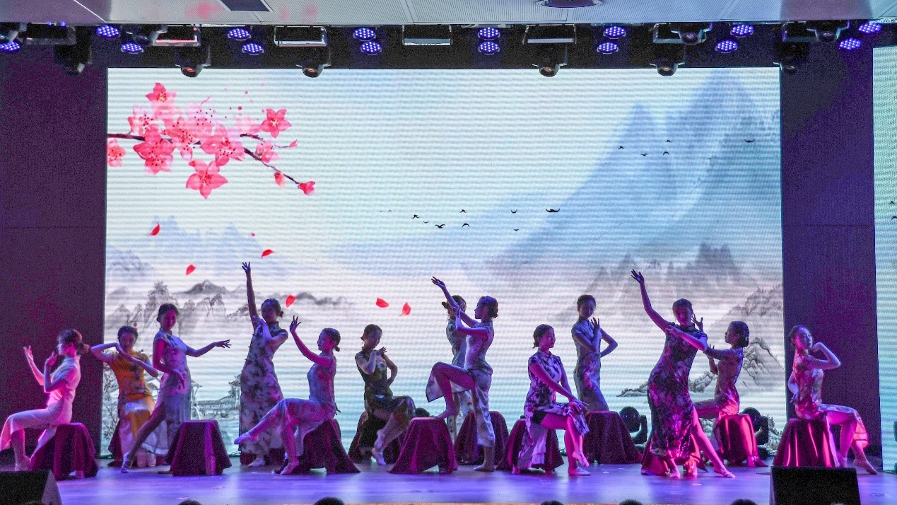 第一篇章“书香会院”,舞蹈《竹简》、民乐合奏《书香一声一世》美轮美奂,给予在场观众一场传统文化盛宴;相声《讲大学》活泼欢快,书名串烧令人拍案叫绝;走秀《梦回汉唐》踏乐而来,衣袂翩翩,亭亭玉立,风姿尽展。