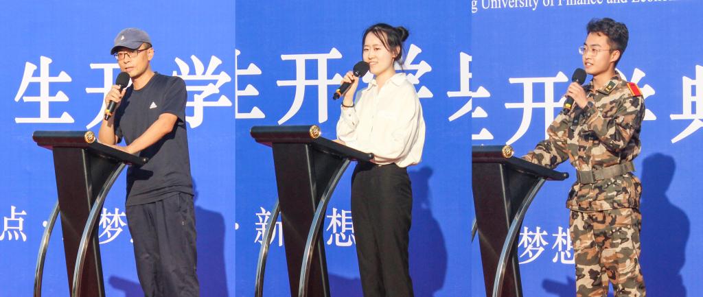 教师代表葛锐老师在致辞中表示,正规的大学教育是走向社会的必由之路。大学只是阶段性的总结,为进一步提高人生目标,实现自我,更应注重合理规划,不断探索与实践,脚踏实地的实现梦想。16级学生代表武奕昕表示要培养综合能力,努力提升专业素养,用自己的方式找到自己的价值,为未来可能会获得的一切机遇做好充足的准备。新生代表孙东向全体新生发出倡议,要秉承“克明俊德,格物致知”的校训和“内诚于心,外信于人”的院训,努力学习,提升自我,成为一名德才兼备的山财学子。