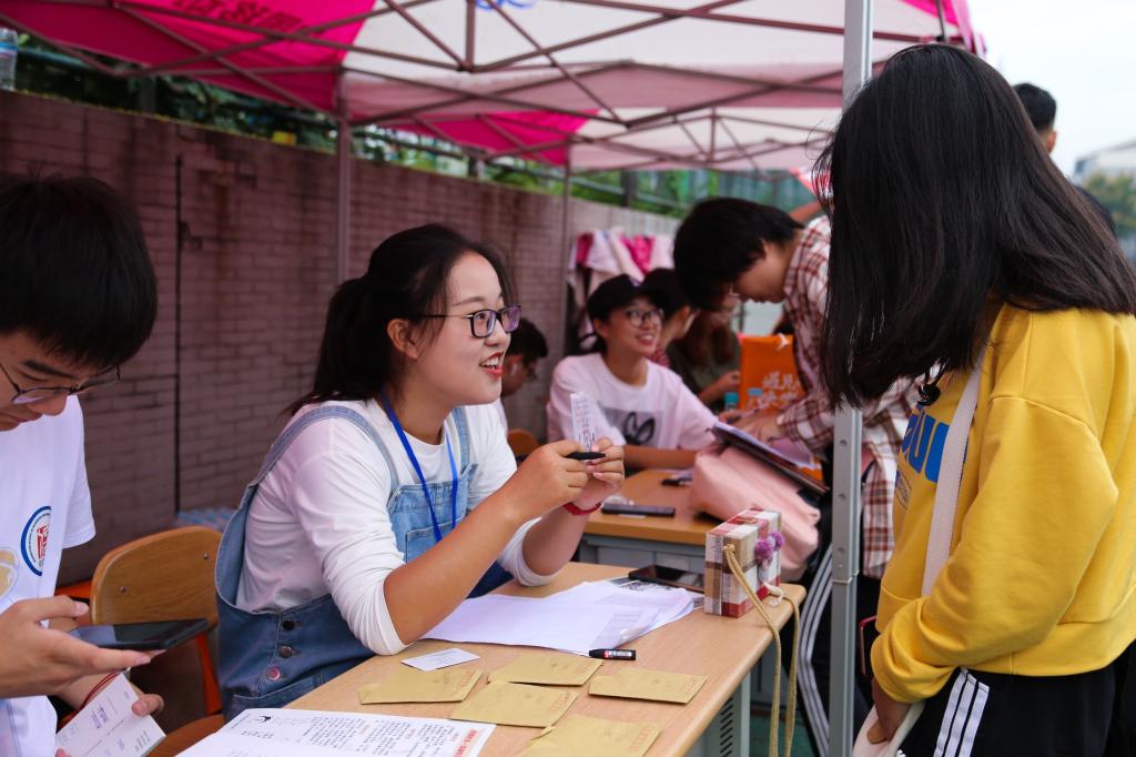 在迎新现场,成人网 把“内诚于心,外信于人”的院训和“严谨、务实、高效、创新”的工作理念深深融入迎新工作的各个环节,努力营造“家国情怀、活力青春、暖心会院”的迎新氛围。全方位展示成人网 文化及近年所取得成绩的喷绘展布、将献礼祖国70华诞的美好祝福与大学生爱国爱校情怀相融合的志愿者服,体现出浓浓的成人网 气质和味道,完美彰显了学科特点和专业特色;新生手册和文具伴手礼及创意活动“浪矢信箱”、“新活力”手印墙和vlog漂流瓶,为2019级新生留下了属于他们的第一个“会院印记”。