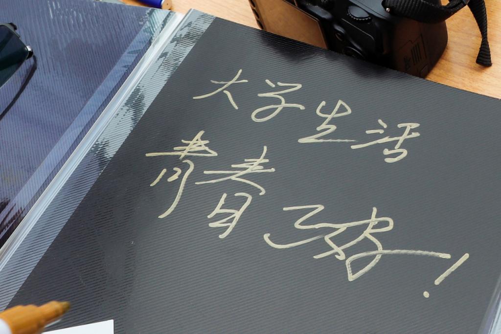 的风采,又为新生营造出了家的温暖。他在留言纪念册上题下了“大学生活 青春正好”,希望新生以梦为马,不负韶华,在大学四年里不断充实自己,实现自己的理想,成为国之栋梁。