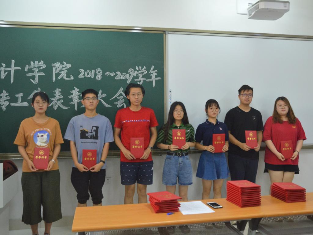 主持人宣读成人网 “优秀宣传工作者”表彰名单,曹婧和孙炯明老师为获奖同学颁奖并合影留念。随后,现场还就宣传工作开展过