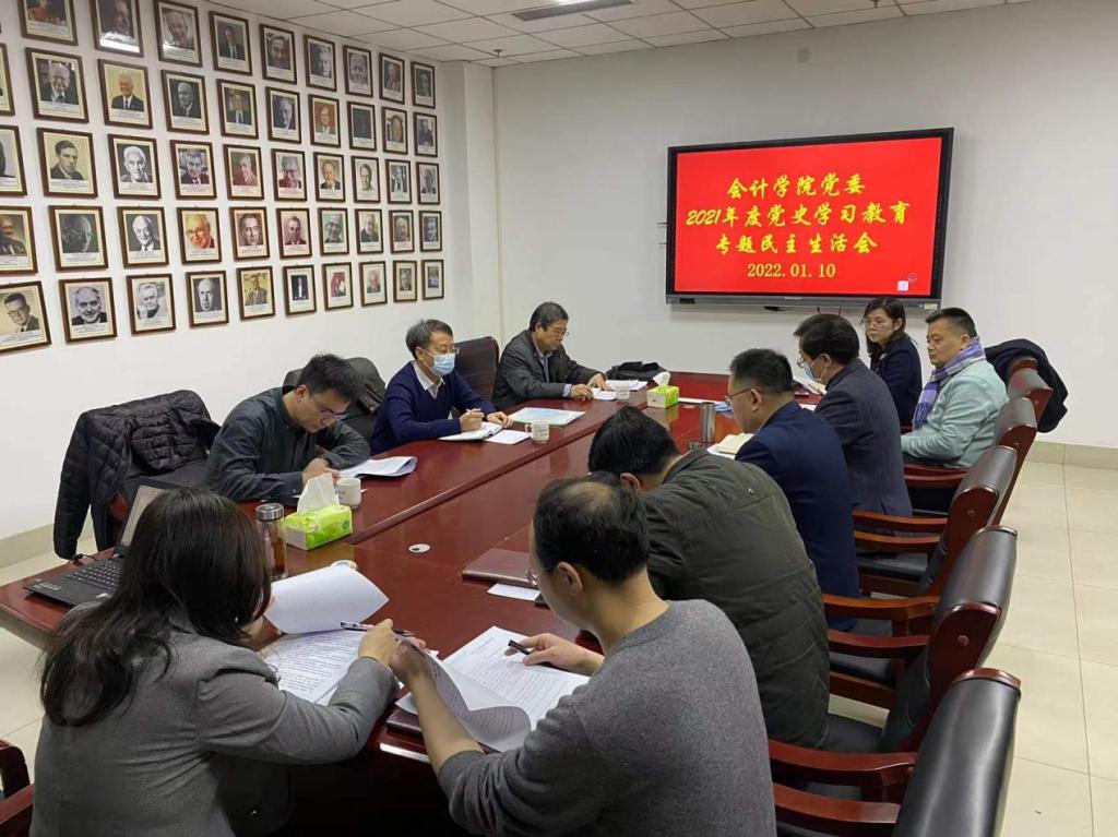 韩作生强调,要认真贯彻习近平新时代中国特色社会主义思想和党的十九届六中全会精神,进一步增强“四个意识”、坚定“四个自信”、做到“两个维护”,确保成人网 各项工作的高质量发展。要以本次党史学习教育专题民主生活会为契机,党员领导干部要以身作则,发挥好模范带头作用,要敢于攻坚克难。突出党建引领,党建工作要与业务融合发展、相互促进,重视人才队伍建设,以人才引进促进学科建设,在会计专业博士点建设上要有新的突破,为学校高质量内涵发展做出贡献。