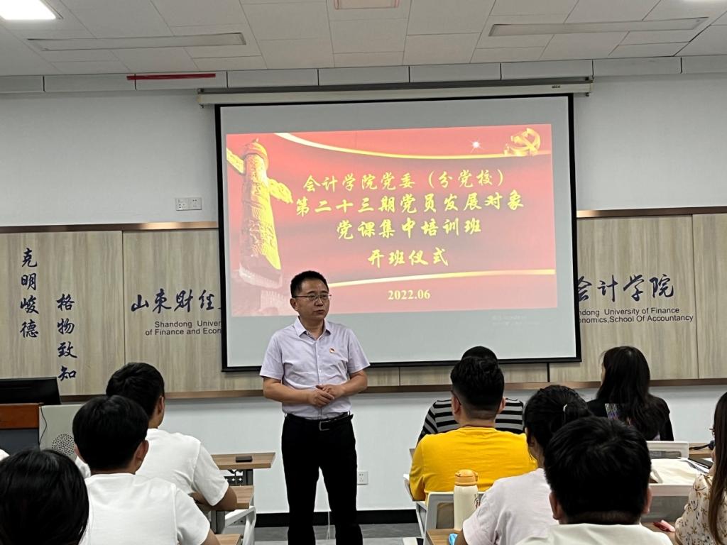 为进一步提高党员发展对象对党的基本理论、基本路线和基本知识的认识,切实提高发展对象的思想认识、政治觉悟、党性修养,引导发展对象从思想上、行动上积极向党组织靠拢,按照校党委组织部部署和成人网 党委工作安排,成人网 于2022年6月13日在燕山校区逸夫楼305教室举行成人网 第二十三期党员发展对象党课集中培训班开班仪式。党委书记邵文涛,党委副书记钟毓卓、郑大伟出席开班仪式,新一批党员发展对象参加,开班仪式由郑大伟主持。