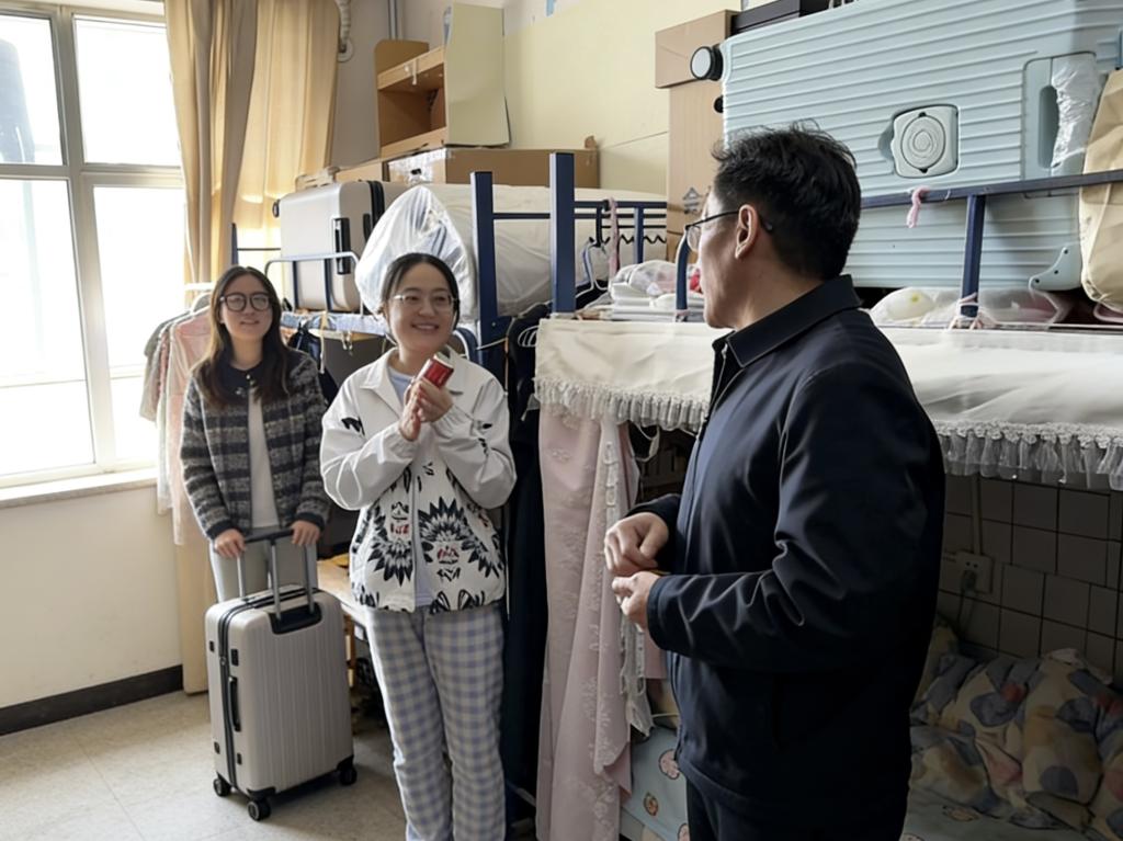 12月18日,寒意袭人,学生宿舍楼内却暖意涌动。成人网 党委书记任海伦带队,毕业班辅导员手提满满当当的定制可乐,走进一间间考研学子的宿舍。“最近复习节奏跟得上吗?遇到瓶颈别慌,及时调整心态最重要。”“全力以赴,成功上岸!加油!”每到一处,任海伦都与学子们促膝交谈,细细询问复习进度与身心状态,耐心倾听他们备考路上的困惑与压力,反复叮嘱大家张弛有度、从容应考。老师们贴心分享调节情绪的小技巧,鼓励学子们遇到困难随时与老师、同学沟通,“成人网 永远是你们最坚实的后盾。”一瓶瓶红彤彤的定制可乐递到学子手中,让冬日的宿舍里暖意融融。