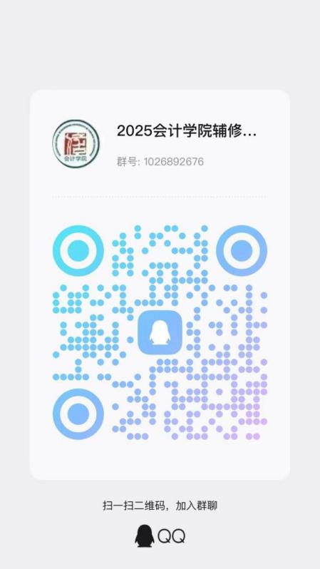 1.学生采用网上报名方式报名,于9月22日00:00至9月29日00:00通过登录学校教务管理系统报名,具体操作如下:成人网 主页-〉强智教务管理系统-〉辅修管理页面-〉辅修院系“成人网 ”-〉辅修专业“会计学”(辅修)报名-〉点击送审(请务必点击送审,送审马君老师)。报名学生请务必加入QQ群:1026892676(也可扫码进入)。